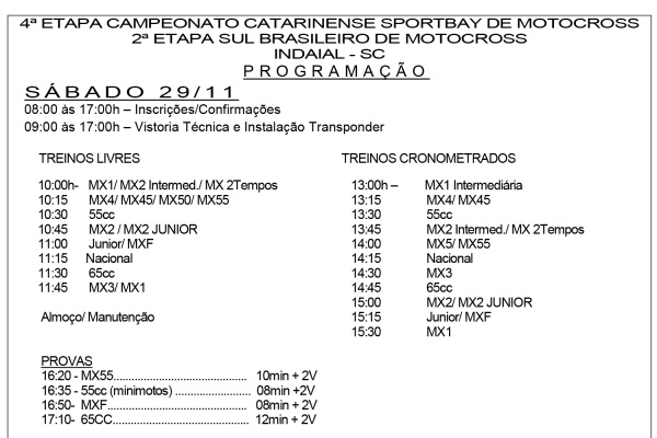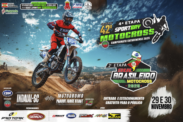 A 4ª etapa do SportBay Campeonato Catarinense de Motocross 2025 promete um fim de semana de alto nível esportivo, reforçando a tradição do motocross catarinense e mantendo viva a expectativa para a grande decisão em dezembro.