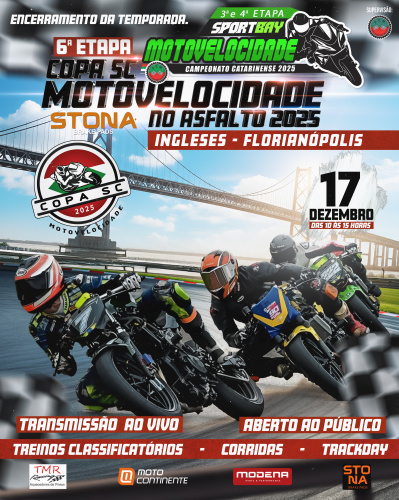 Florianópolis se prepara para receber um verdadeiro espetáculo sobre duas rodas. No dia 07 de dezembro, o bairro dos Ingleses será palco da 6ª etapa da Copa SC de Motovelocidade no Asfalto 2025, um evento que também integra a 3ª e 4ª etapas do SportBay Campeonato Catarinense de Motovelocidade 2025. A competição marca o encerramento oficial da temporada, prometendo fortes emoções para pilotos e fãs do motociclismo.